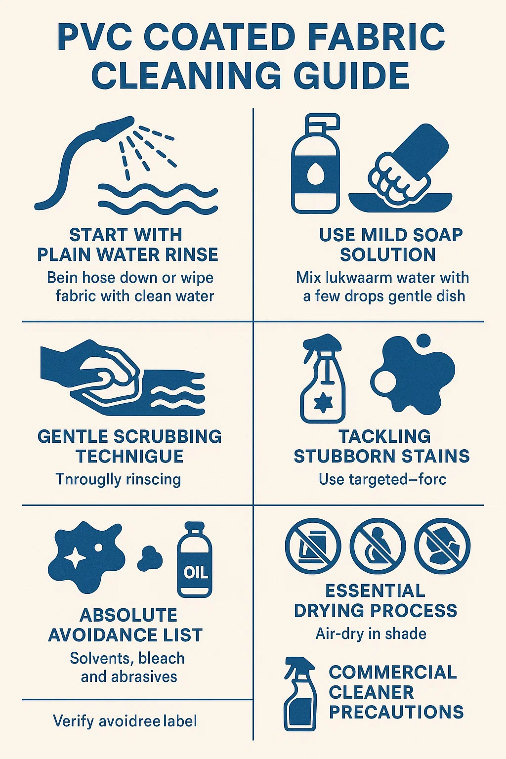 Narito ang isang praktikal na gabay para sa paglilinis PVC Coated Tela Batay sa karaniwang karanasan at pangangalaga sa materyal: