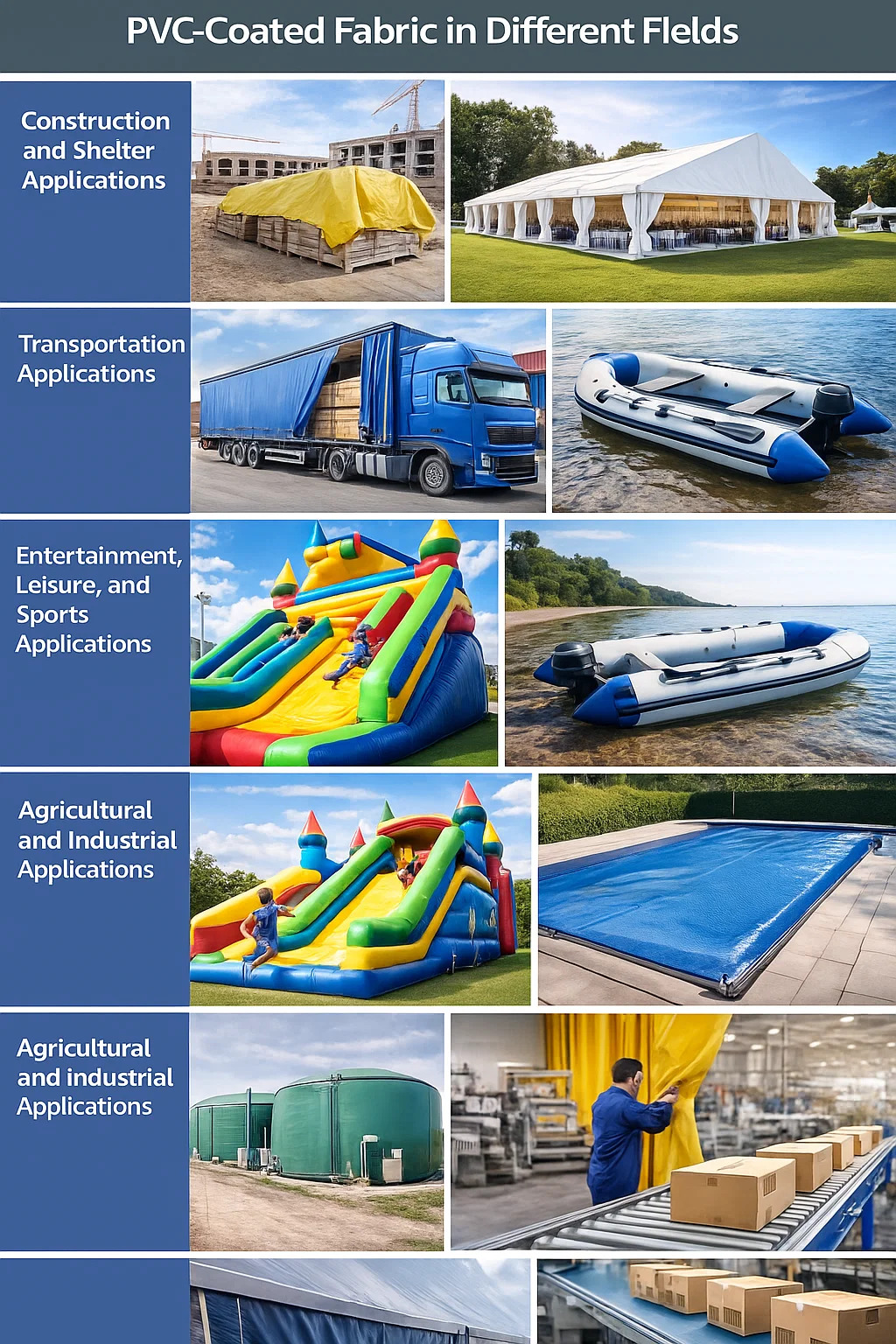 Narito ang ilan sa mga pangunahing gamit ng PVC coated fabric sa iba't ibang larangan: