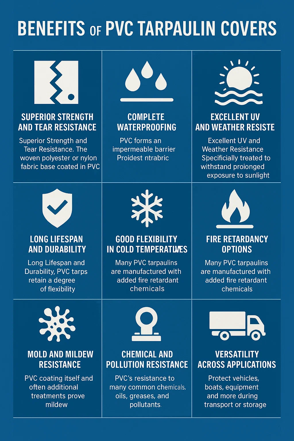 Narito ang mga pangunahing pakinabang ng PVC Tarpaulin Covers :